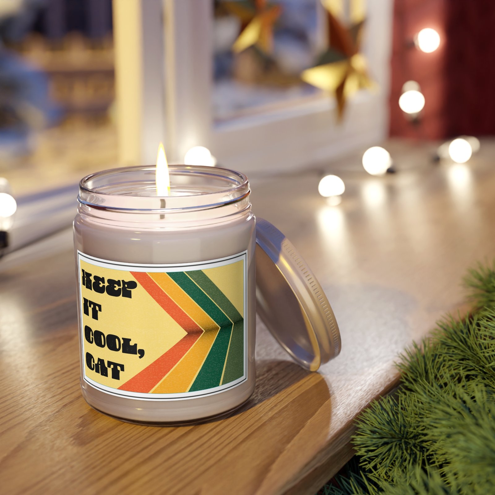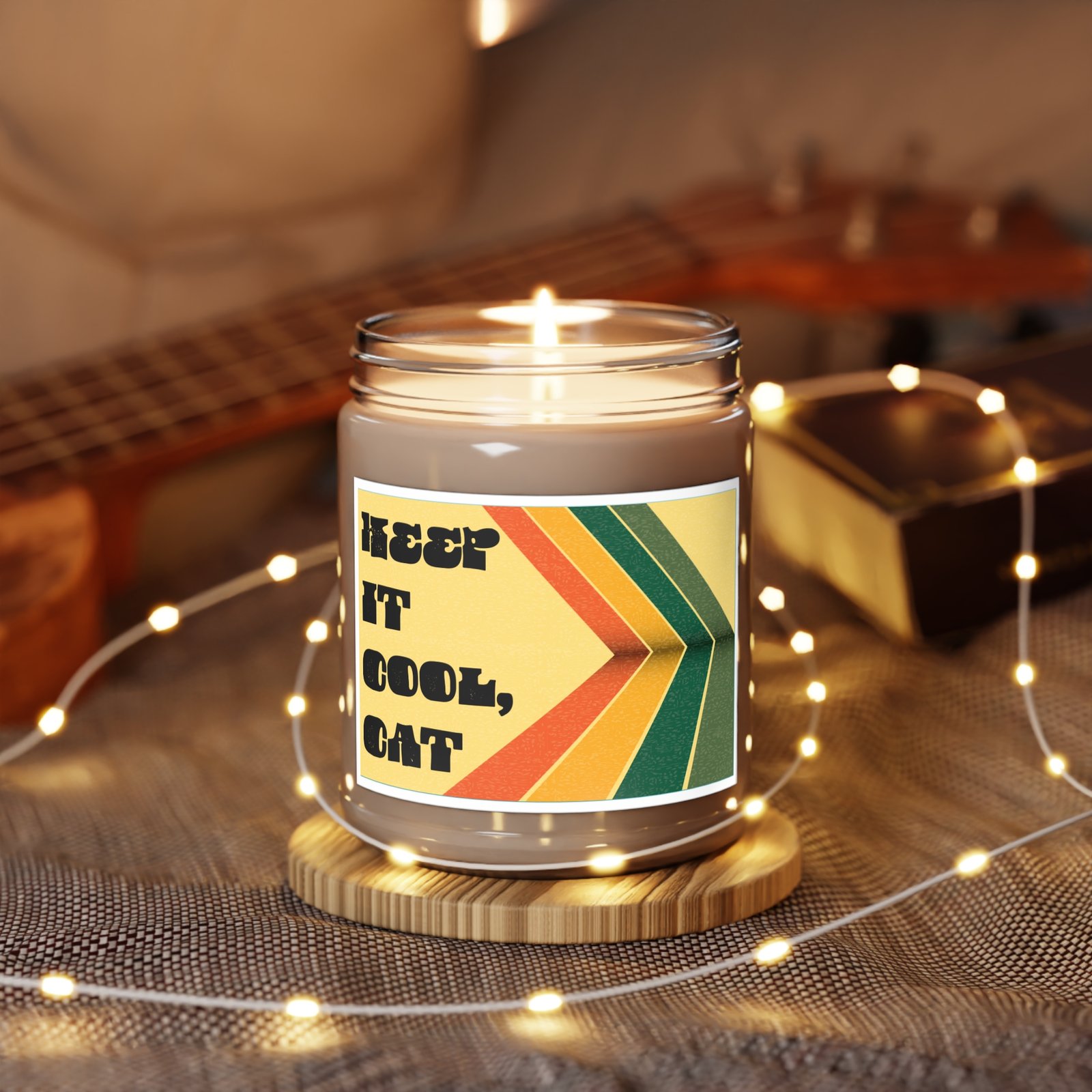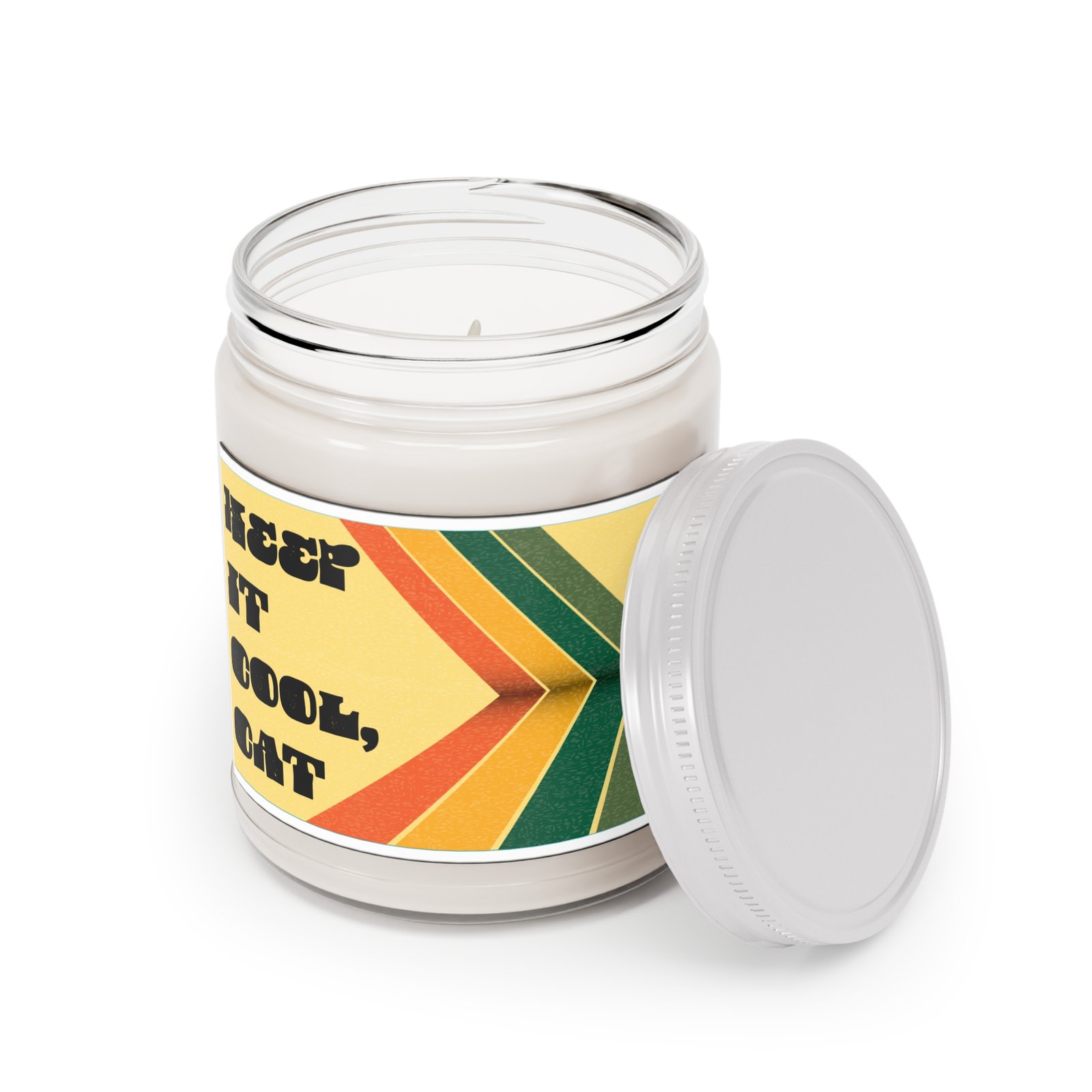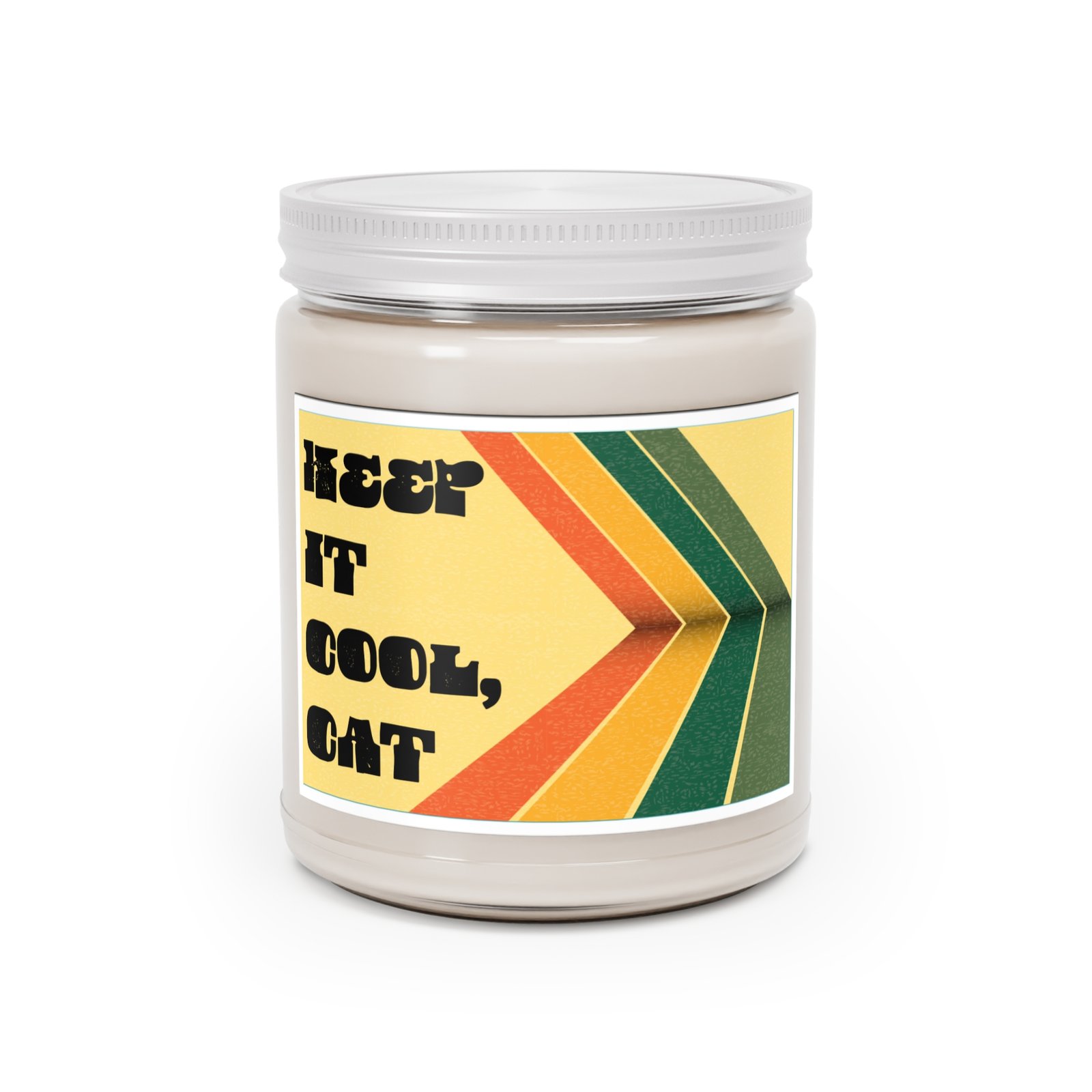 For the days that ask too much and the nights that need a little mellow magic — this hand-poured 9 oz soy candle is your permission slip to unwind. Wrapped in a bold retro label with groovy stripes and a wink of vintage charm, it’s a reminder to breathe deep and keep it cool, cat.