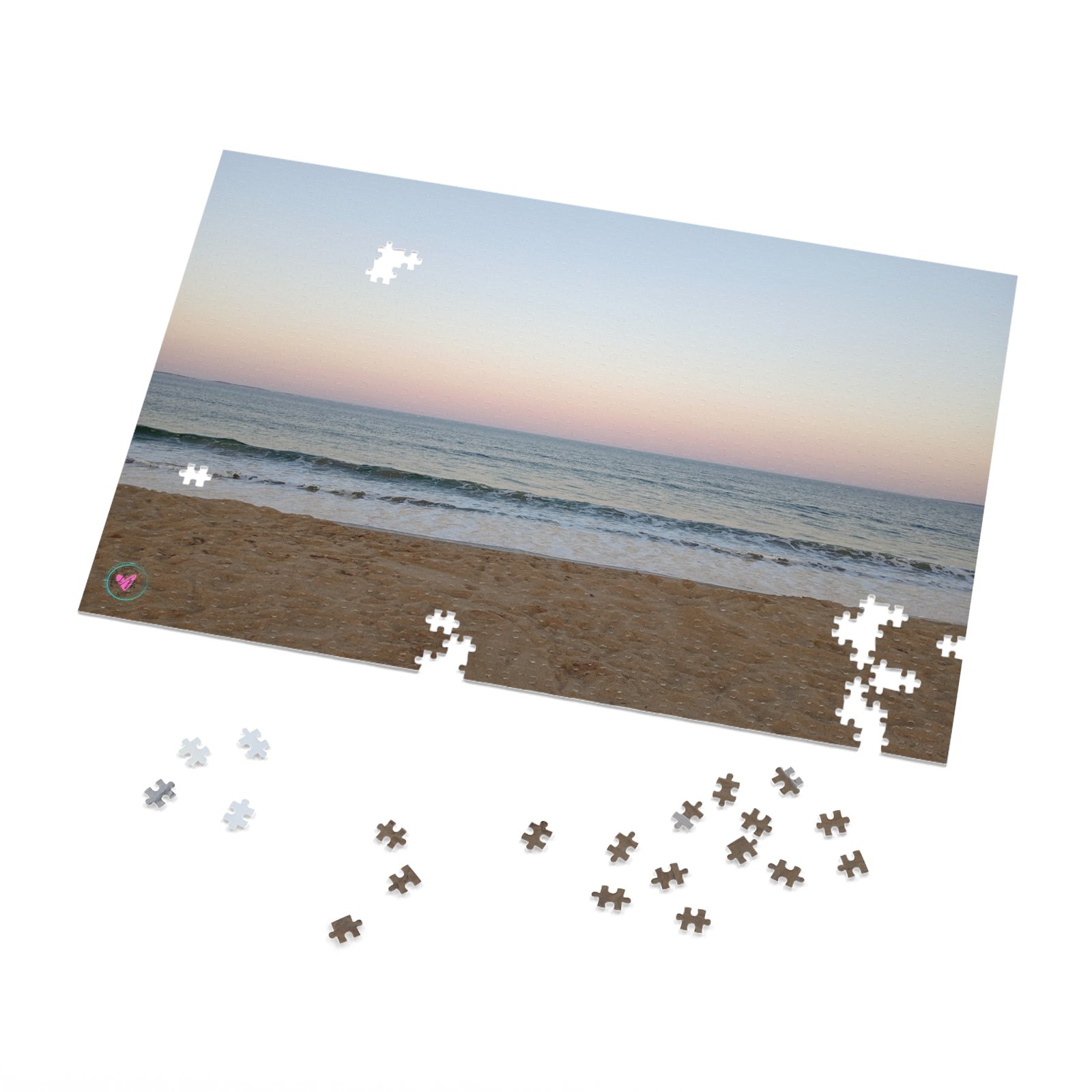 Bring the calming vibe of a pastel beach sunset in Maine into your home with this super challenging 1000-piece jigsaw puzzle. Perfect for art lovers and puzzle enthusiasts, this colorful gradient sunset sky from blue to pink, and sandy beach foreground will provide hours of relaxing entertainment. Ideal for holidays, rainy days, and cozy nights in.