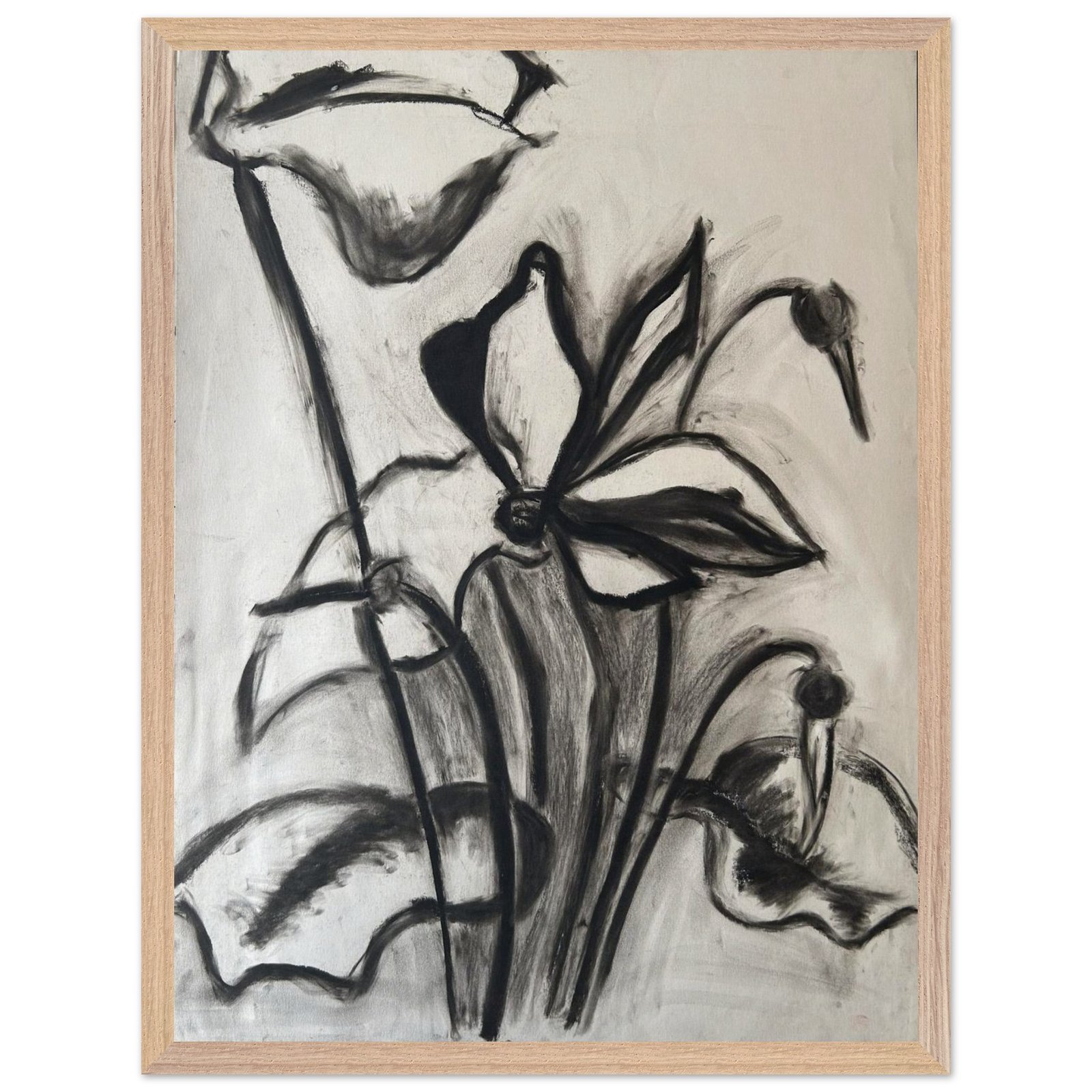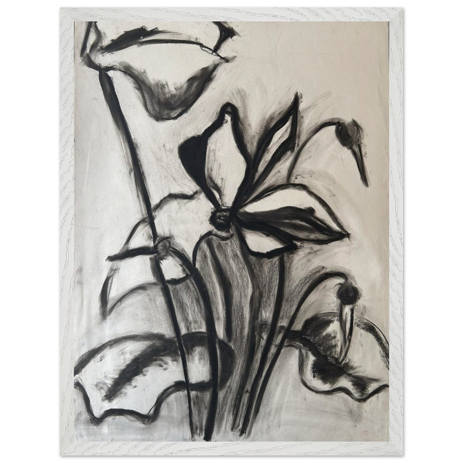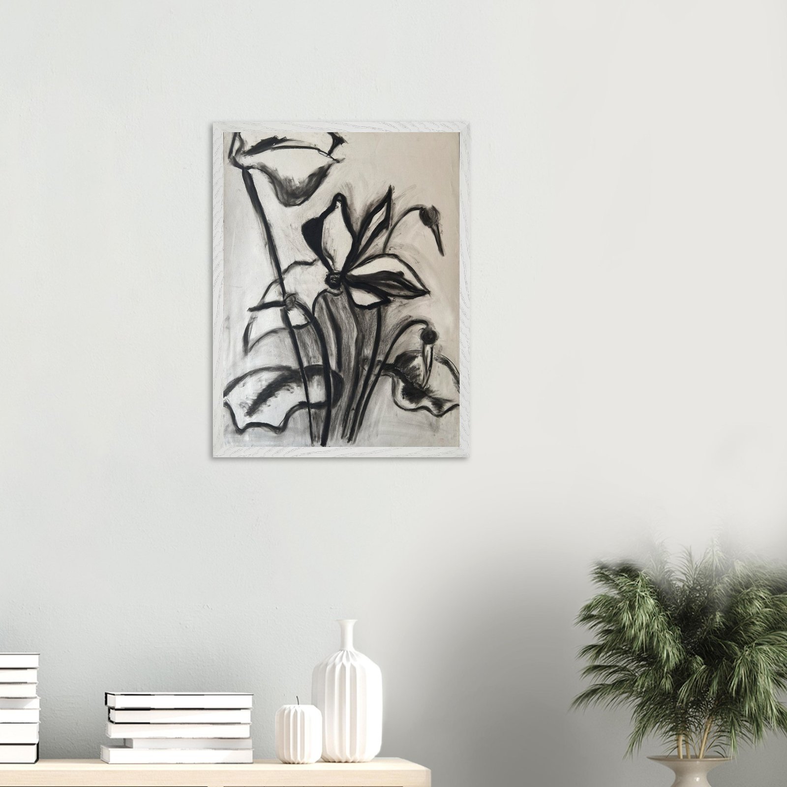 —a museum-quality framed poster featuring my original charcoal drawing of a wax plant. This piece captures the quiet strength of nature through soft shadows, expressive lines, and the subtle geometry of leaves reaching toward the light.