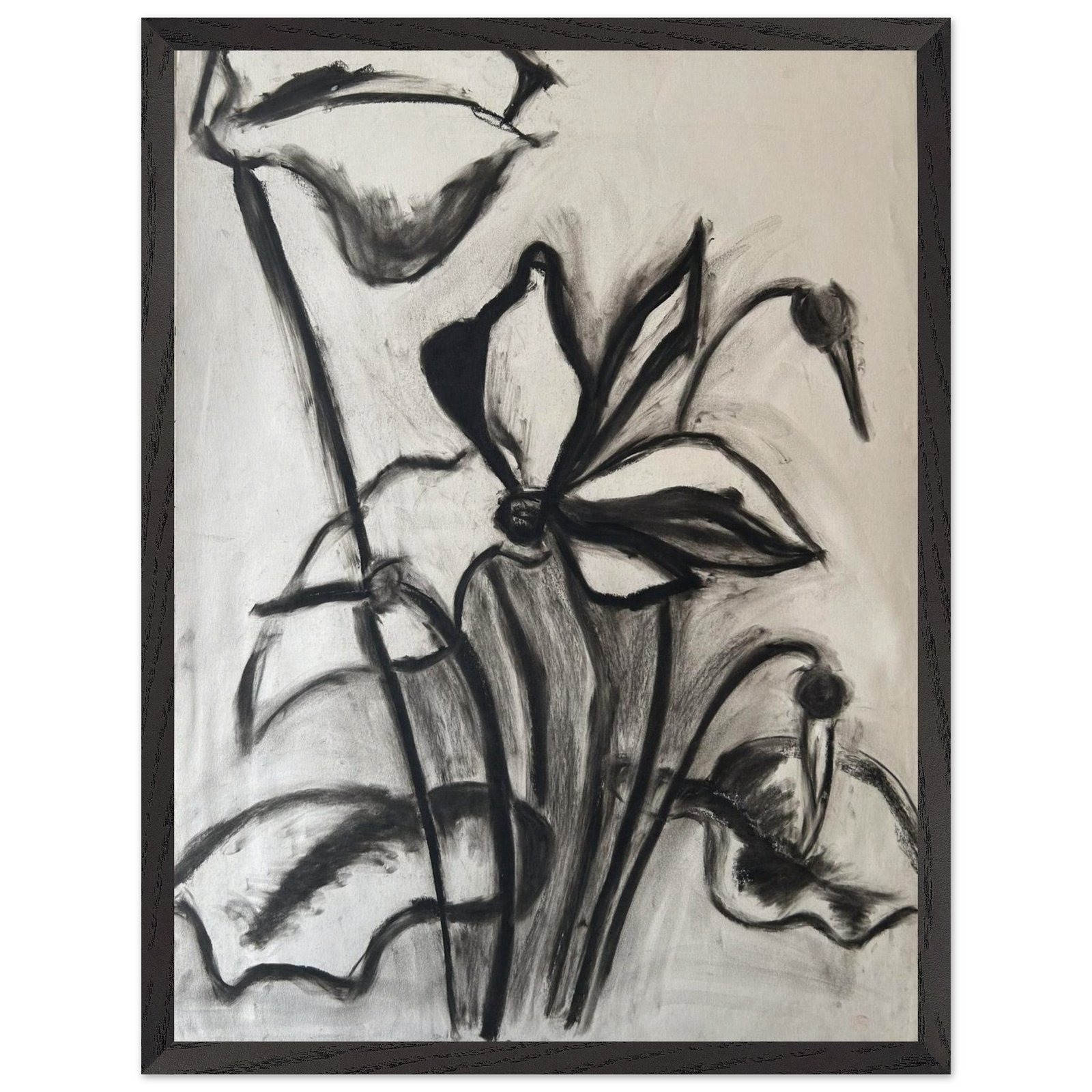 Rendered in rich black charcoal, the artwork balances detail and abstraction, making it a versatile addition to modern, minimalist, or nature-inspired interiors. The customizable frame options allow you to choose the tone that best suits your space—whether you prefer the grounding contrast of black or the warmth of natural wood.