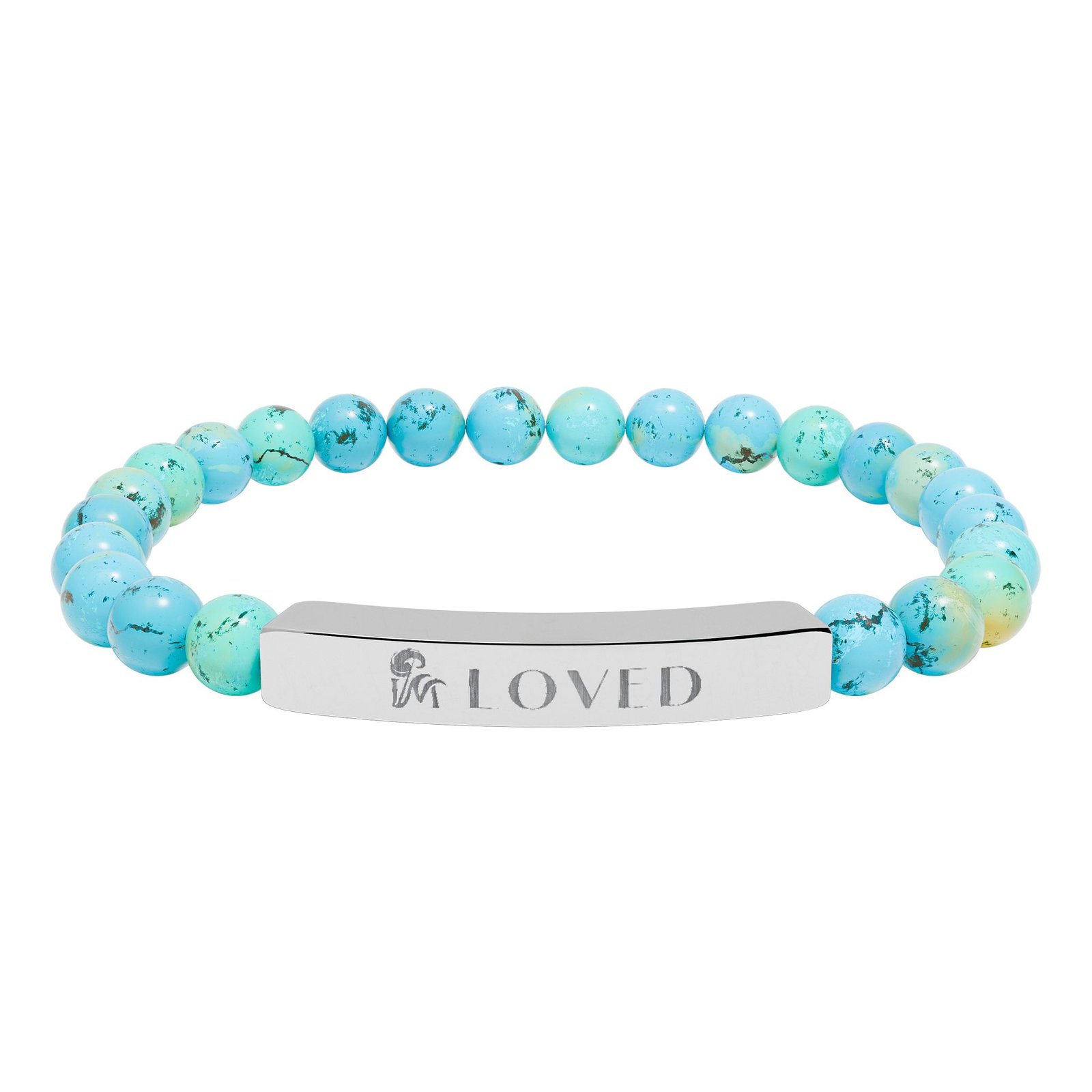 A wearable whisper of intention, the “Imagical-I M LOVED” bracelet blends soft pastel stones with a brushed stainless steel bar engraved with quiet power. Designed to slip on effortlessly and sit flush against the wrist, it’s a gentle reminder that magic lives in the everyday.