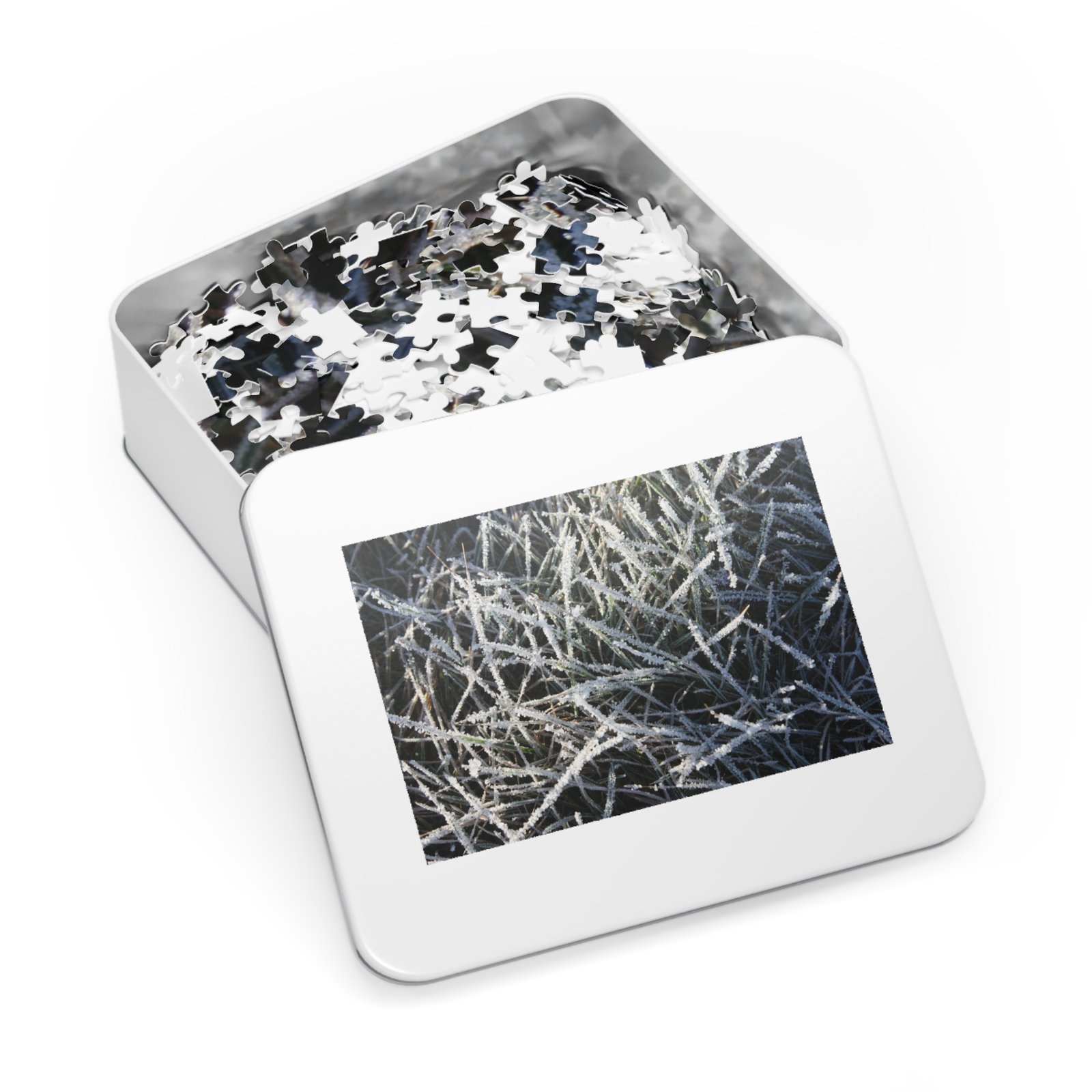 .: This custom 1000-piece puzzle comes in a white metal tin box