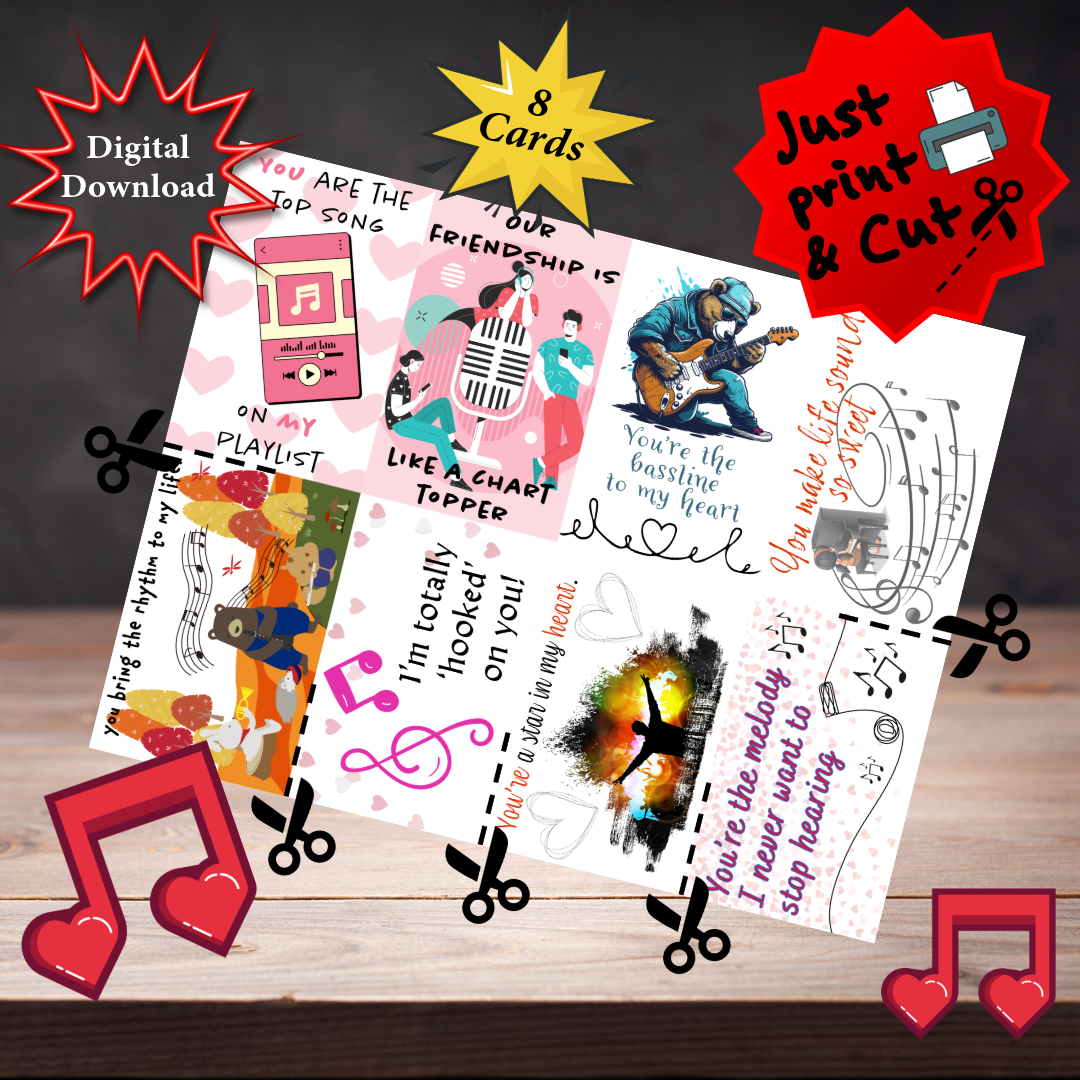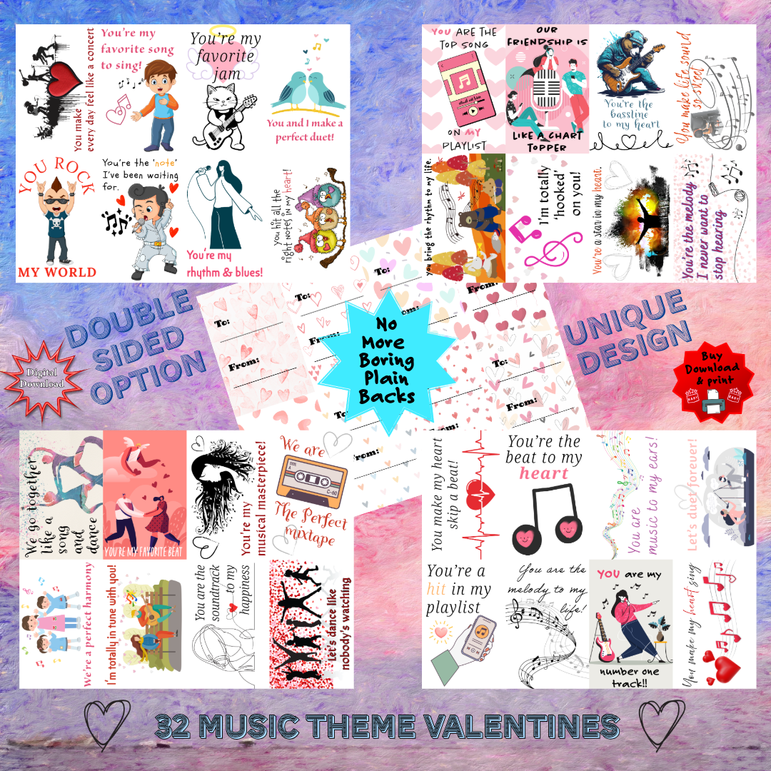 Skip the store-bought cards and print these valentines instantly at home! This digital download makes it easy for parents and teachers to print as many as needed for a whole class or music group. Plus, with a matching back design included, you can create professional-quality, double-sided valentines for an extra special touch.