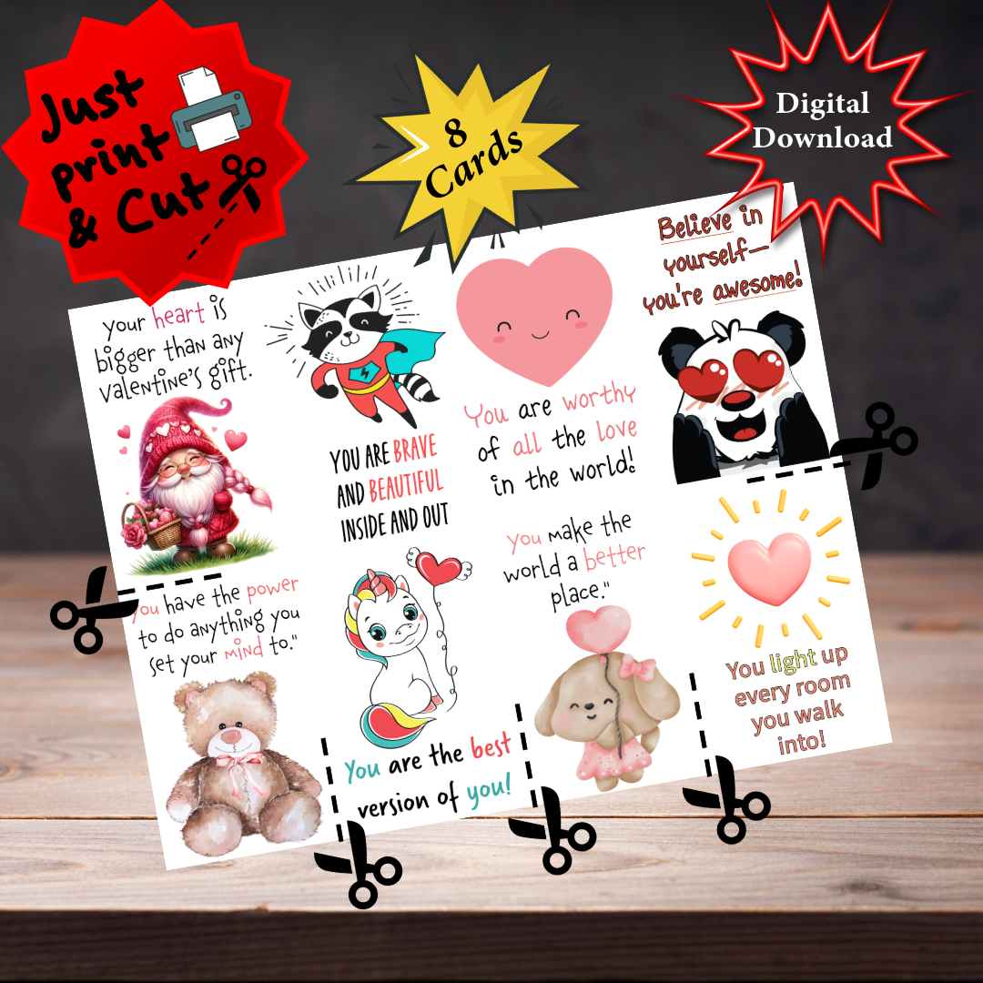 This Valentine’s Day, let’s make a meaningful impact with our printable kids’ valentines! More than just cards, these thoughtfully designed valentines are a way to spread joy, encouragement, and confidence. Each card is filled with positive affirmations that remind children just how special and capable they are. Whether you’re a teacher, parent, or homeschooler, these uplifting valentines make the perfect addition to any classroom exchange! This Valentine’s Day, make a difference with our printable kids’ valentines! Designed to inspire and uplift, these unique cards are perfect for classroom exchanges. Each card features positive affirmations that remind children how amazing they are, making them more than just valentines—they’re confidence boosters!